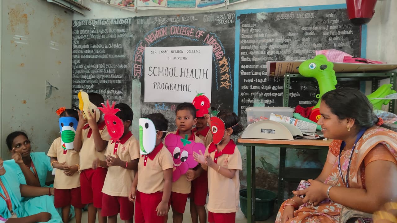 Our college Bsc Nursing final year students conducted school health programme on 16/3/2026 the students of Sir Isaac Newton College of Nursing B.SC NURSING III YEAR Students conducted an Anganwadi Health Program at Anthanapettai. The program focused on creating awareness about proper handwashing techniques, the importance of eating vegetables and fruits, and maintaining personal hygiene. The session was interactive, helping children and mothers understand healthy daily practices for better well-being. School Health Program was organized at Anthanapettai Government Primary School. The program included engaging and educational activities such as: